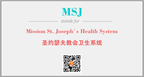 上述内容是“Mission St. Joseph`s Health System”作为“MSJ”的缩写,解释为“圣约瑟夫教会卫生系统”时的信息,以及英文缩略词MSJ所代表的英文单词,其对应的中文拼音、详细解释以及在英文中的流行度和相关分类、应用领域及应用示例等。