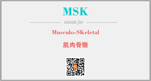 上述内容是“Musculo-SKeletal”作为“MSK”的缩写,解释为“肌肉骨骼”时的信息,以及英文缩略词MSK所代表的英文单词,其对应的中文拼音、详细解释以及在英文中的流行度和相关分类、应用领域及应用示例等。