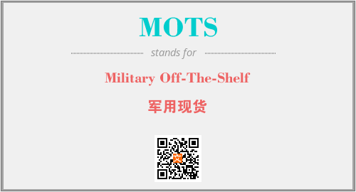 英文缩略词“MOTS”经常作为“Military Off-The-Shelf”的英文缩写来使用,中文表示:“军用现货”。本文将详细介绍英文缩写词MOTS所代表英文单词,其对应的中文拼音、详细解释以及在英语中的流行度。此外,还有关于缩略词MOTS的分类、应用领域及相关应用示例等。
