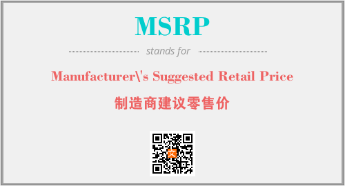 英文缩略词“MSRP”经常作为“Manufacturer\'s Suggested Retail Price”的英文缩写来使用,中文表示:“制造商建议零售价”。本文将详细介绍英文缩写词MSRP所代表英文单词,其对应的中文拼音、详细解释以及在英语中的流行度。此外,还有关于缩略词MSRP的分类、应用领域及相关应用示例等。