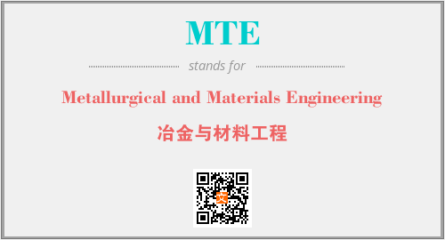 上述内容是“Metallurgical and Materials Engineering”作为“MTE”的缩写,解释为“冶金与材料工程”时的信息,以及英文缩略词MTE所代表的英文单词,其对应的中文拼音、详细解释以及在英文中的流行度和相关分类、应用领域及应用示例等。