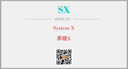 上述内容是“System X”作为“SX”的缩写,解释为“系统X”时的信息,以及英文缩略词SX所代表的英文单词,其对应的中文拼音、详细解释以及在英文中的流行度和相关分类、应用领域及应用示例等。