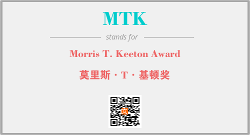 上述内容是“Morris T. Keeton Award”作为“MTK”的缩写,解释为“莫里斯·T·基顿奖”时的信息,以及英文缩略词MTK所代表的英文单词,其对应的中文拼音、详细解释以及在英文中的流行度和相关分类、应用领域及应用示例等。