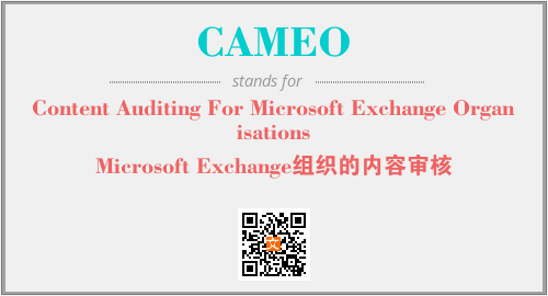 上述内容是“Content Auditing For Microsoft Exchange Organisations”作为“CAMEO”的缩写,解释为“Microsoft Exchange组织的内容审核”时的信息,以及英文缩略词CAMEO所代表的英文单词,其对应的中文拼音、详细解释以及在英文中的流行度和相关分类、应用领域及应用示例等。
