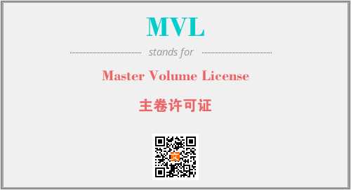 英文缩略词“MVL”经常作为“Master Volume License”的英文缩写来使用,中文表示:“主卷许可证”。本文将详细介绍英文缩写词MVL所代表英文单词,其对应的中文拼音、详细解释以及在英语中的流行度。此外,还有关于缩略词MVL的分类、应用领域及相关应用示例等。