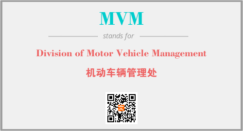 英文缩略词“MVM”经常作为“Division of Motor Vehicle Management”的英文缩写来使用,中文表示:“机动车辆管理处”。本文将详细介绍英文缩写词MVM所代表英文单词,其对应的中文拼音、详细解释以及在英语中的流行度。此外,还有关于缩略词MVM的分类、应用领域及相关应用示例等。