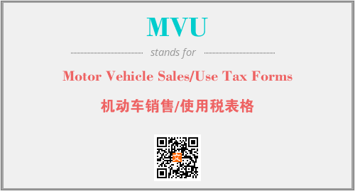 上述内容是“Motor Vehicle Sales/Use Tax Forms”作为“MVU”的缩写,解释为“机动车销售/使用税表格”时的信息,以及英文缩略词MVU所代表的英文单词,其对应的中文拼音、详细解释以及在英文中的流行度和相关分类、应用领域及应用示例等。