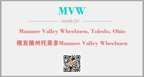 上述内容是“Maumee Valley Wheelmen, Toledo, Ohio”作为“MVW”的缩写,解释为“俄亥俄州托莱多Maumee Valley Wheelmen”时的信息,以及英文缩略词MVW所代表的英文单词,其对应的中文拼音、详细解释以及在英文中的流行度和相关分类、应用领域及应用示例等。