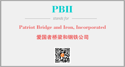 上述内容是“Patriot Bridge and Iron, Incorporated”作为“PBII”的缩写,解释为“爱国者桥梁和钢铁公司”时的信息,以及英文缩略词PBII所代表的英文单词,其对应的中文拼音、详细解释以及在英文中的流行度和相关分类、应用领域及应用示例等。