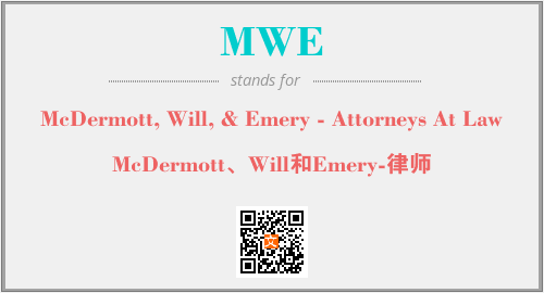 以上为McDermott, Will, & Emery - Attorneys At Law英文缩略词MWE的中文解释,以及该英文缩写在英语的流行度、分类和应用领域方面的信息。