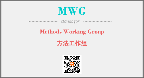 英文缩略词“MWG”经常作为“Methods Working Group”的英文缩写来使用,中文表示:“方法工作组”。本文将详细介绍英文缩写词MWG所代表英文单词,其对应的中文拼音、详细解释以及在英语中的流行度。此外,还有关于缩略词MWG的分类、应用领域及相关应用示例等。