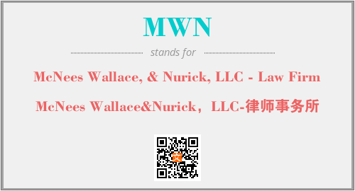 上述内容是“McNees Wallace, & Nurick, LLC - Law Firm”作为“MWN”的缩写,解释为“McNees Wallace&Nurick,LLC-律师事务所”时的信息,以及英文缩略词MWN所代表的英文单词,其对应的中文拼音、详细解释以及在英文中的流行度和相关分类、应用领域及应用示例等。
