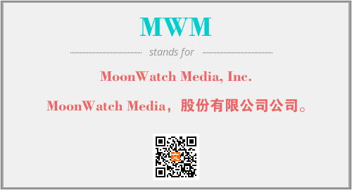 英文缩略词“MWM”经常作为“MoonWatch Media, Inc.”的英文缩写来使用,中文表示:“MoonWatch Media,股份有限公司公司。”。本文将详细介绍英文缩写词MWM所代表英文单词,其对应的中文拼音、详细解释以及在英语中的流行度。此外,还有关于缩略词MWM的分类、应用领域及相关应用示例等。