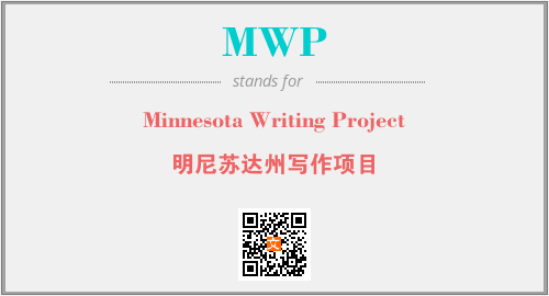 上述内容是“Minnesota Writing Project”作为“MWP”的缩写,解释为“明尼苏达州写作项目”时的信息,以及英文缩略词MWP所代表的英文单词,其对应的中文拼音、详细解释以及在英文中的流行度和相关分类、应用领域及应用示例等。