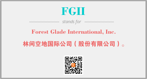 上述内容是“Forest Glade International, Inc.”作为“FGII”的缩写,解释为“林间空地国际公司(股份有限公司)。”时的信息,以及英文缩略词FGII所代表的英文单词,其对应的中文拼音、详细解释以及在英文中的流行度和相关分类、应用领域及应用示例等。