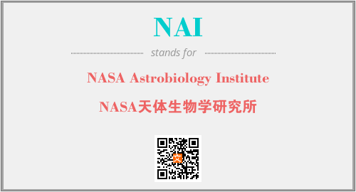 上述内容是“NASA Astrobiology Institute”作为“NAI”的缩写,解释为“NASA天体生物学研究所”时的信息,以及英文缩略词NAI所代表的英文单词,其对应的中文拼音、详细解释以及在英文中的流行度和相关分类、应用领域及应用示例等。
