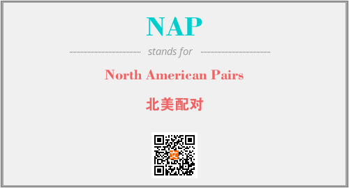 上述内容是“North American Pairs”作为“NAP”的缩写,解释为“北美配对”时的信息,以及英文缩略词NAP所代表的英文单词,其对应的中文拼音、详细解释以及在英文中的流行度和相关分类、应用领域及应用示例等。