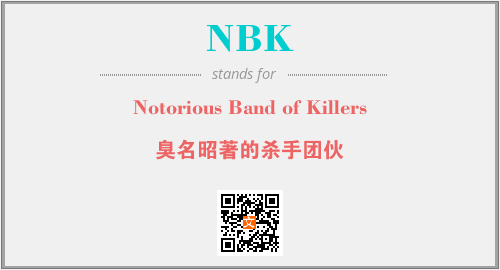 以上为Notorious Band of Killers英文缩略词NBK的中文解释,以及该英文缩写在英语的流行度、分类和应用领域方面的信息。