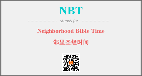 以上为Neighborhood Bible Time英文缩略词NBT的中文解释,以及该英文缩写在英语的流行度、分类和应用领域方面的信息。