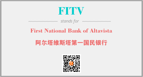 上述内容是“First National Bank of Altavista”作为“FITV”的缩写,解释为“阿尔塔维斯塔第一国民银行”时的信息,以及英文缩略词FITV所代表的英文单词,其对应的中文拼音、详细解释以及在英文中的流行度和相关分类、应用领域及应用示例等。