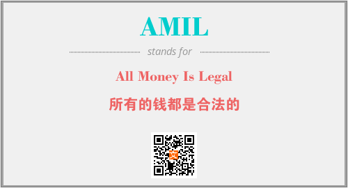上述内容是“All Money Is Legal”作为“AMIL”的缩写,解释为“所有的钱都是合法的”时的信息,以及英文缩略词AMIL所代表的英文单词,其对应的中文拼音、详细解释以及在英文中的流行度和相关分类、应用领域及应用示例等。