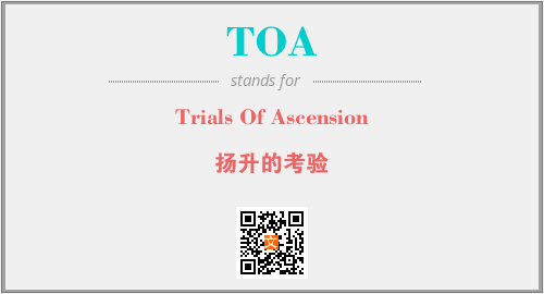 上述内容是“Trials Of Ascension”作为“TOA”的缩写,解释为“扬升的考验”时的信息,以及英文缩略词TOA所代表的英文单词,其对应的中文拼音、详细解释以及在英文中的流行度和相关分类、应用领域及应用示例等。