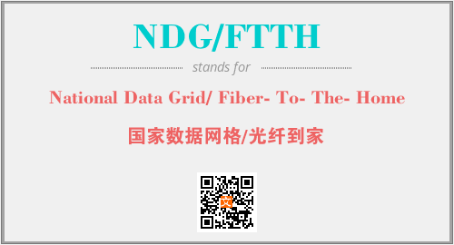 英文缩略词“NDG/FTTH”经常作为“National Data Grid/ Fiber- To- The- Home”的英文缩写来使用,中文表示:“国家数据网格/光纤到家”。本文将详细介绍英文缩写词NDG/FTTH所代表英文单词,其对应的中文拼音、详细解释以及在英语中的流行度。此外,还有关于缩略词NDG/FTTH的分类、应用领域及相关应用示例等。
