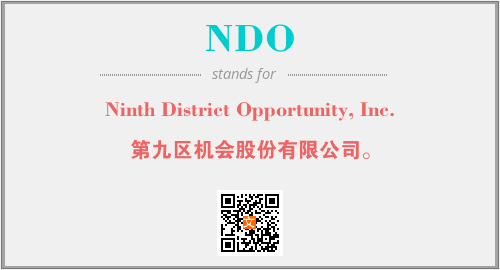 上述内容是“Ninth District Opportunity, Inc.”作为“NDO”的缩写,解释为“第九区机会股份有限公司。”时的信息,以及英文缩略词NDO所代表的英文单词,其对应的中文拼音、详细解释以及在英文中的流行度和相关分类、应用领域及应用示例等。
