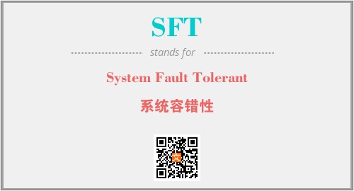 上述内容是“System Fault Tolerant”作为“SFT”的缩写,解释为“系统容错性”时的信息,以及英文缩略词SFT所代表的英文单词,其对应的中文拼音、详细解释以及在英文中的流行度和相关分类、应用领域及应用示例等。