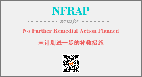 上述内容是“No Further Remedial Action Planned”作为“NFRAP”的缩写,解释为“未计划进一步的补救措施”时的信息,以及英文缩略词NFRAP所代表的英文单词,其对应的中文拼音、详细解释以及在英文中的流行度和相关分类、应用领域及应用示例等。