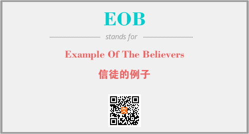 上述内容是“Example Of The Believers”作为“EOB”的缩写,解释为“信徒的例子”时的信息,以及英文缩略词EOB所代表的英文单词,其对应的中文拼音、详细解释以及在英文中的流行度和相关分类、应用领域及应用示例等。