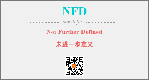 英文缩略词“NFD”经常作为“Not Further Defined”的英文缩写来使用,中文表示:“未进一步定义”。本文将详细介绍英文缩写词NFD所代表英文单词,其对应的中文拼音、详细解释以及在英语中的流行度。此外,还有关于缩略词NFD的分类、应用领域及相关应用示例等。