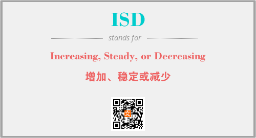 以上为Increasing, Steady, or Decreasing英文缩略词ISD的中文解释,以及该英文缩写在英语的流行度、分类和应用领域方面的信息。