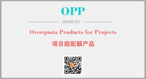 英文缩略词“OPP”经常作为“Overquota Products for Projects”的英文缩写来使用,中文表示:“项目超配额产品”。本文将详细介绍英文缩写词OPP所代表英文单词,其对应的中文拼音、详细解释以及在英语中的流行度。此外,还有关于缩略词OPP的分类、应用领域及相关应用示例等。