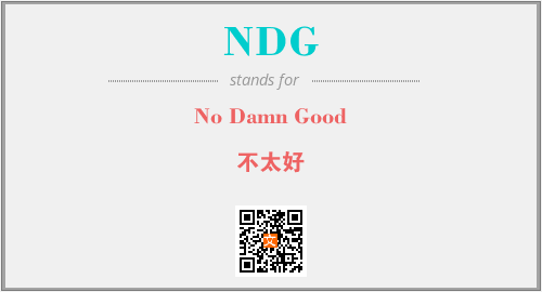 上述内容是“No Damn Good”作为“NDG”的缩写,解释为“不太好”时的信息,以及英文缩略词NDG所代表的英文单词,其对应的中文拼音、详细解释以及在英文中的流行度和相关分类、应用领域及应用示例等。