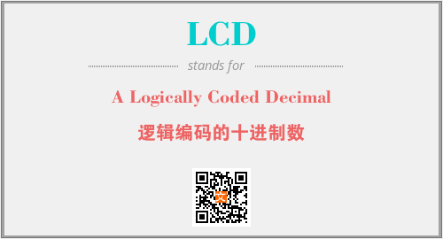上述内容是“A Logically Coded Decimal”作为“LCD”的缩写,解释为“逻辑编码的十进制数”时的信息,以及英文缩略词LCD所代表的英文单词,其对应的中文拼音、详细解释以及在英文中的流行度和相关分类、应用领域及应用示例等。