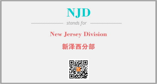 上述内容是“New Jersey Division”作为“NJD”的缩写,解释为“新泽西分部”时的信息,以及英文缩略词NJD所代表的英文单词,其对应的中文拼音、详细解释以及在英文中的流行度和相关分类、应用领域及应用示例等。