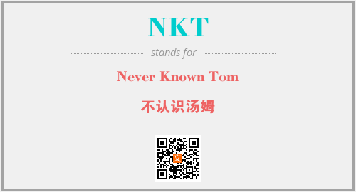 英文缩略词“NKT”经常作为“Never Known Tom”的英文缩写来使用,中文表示:“不认识汤姆”。本文将详细介绍英文缩写词NKT所代表英文单词,其对应的中文拼音、详细解释以及在英语中的流行度。此外,还有关于缩略词NKT的分类、应用领域及相关应用示例等。