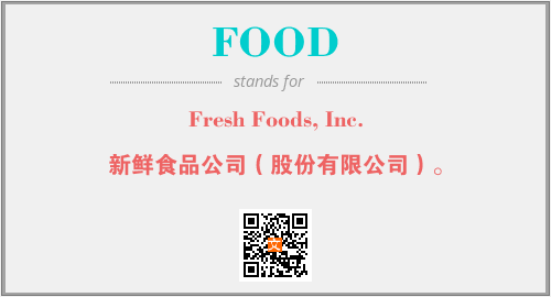 上述内容是“Fresh Foods, Inc.”作为“FOOD”的缩写,解释为“新鲜食品公司(股份有限公司)。”时的信息,以及英文缩略词FOOD所代表的英文单词,其对应的中文拼音、详细解释以及在英文中的流行度和相关分类、应用领域及应用示例等。