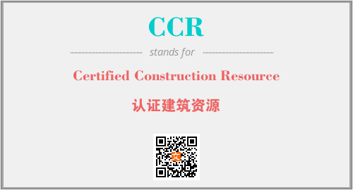 上述内容是“Certified Construction Resource”作为“CCR”的缩写,解释为“认证建筑资源”时的信息,以及英文缩略词CCR所代表的英文单词,其对应的中文拼音、详细解释以及在英文中的流行度和相关分类、应用领域及应用示例等。