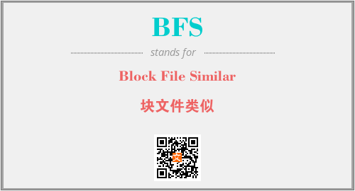 上述内容是“Block File Similar”作为“BFS”的缩写,解释为“块文件类似”时的信息,以及英文缩略词BFS所代表的英文单词,其对应的中文拼音、详细解释以及在英文中的流行度和相关分类、应用领域及应用示例等。