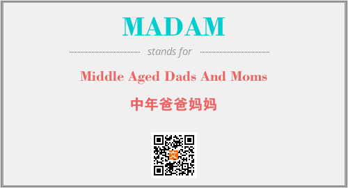 以上为Middle Aged Dads And Moms英文缩略词MADAM的中文解释,以及该英文缩写在英语的流行度、分类和应用领域方面的信息。