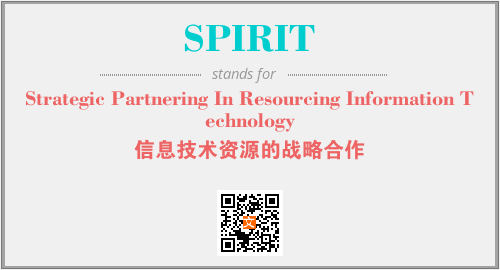 上述内容是“Strategic Partnering In Resourcing Information Technology”作为“SPIRIT”的缩写,解释为“信息技术资源的战略合作”时的信息,以及英文缩略词SPIRIT所代表的英文单词,其对应的中文拼音、详细解释以及在英文中的流行度和相关分类、应用领域及应用示例等。