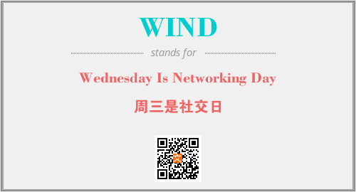 英文缩略词“WIND”经常作为“Wednesday Is Networking Day”的英文缩写来使用,中文表示:“周三是社交日”。本文将详细介绍英文缩写词WIND所代表英文单词,其对应的中文拼音、详细解释以及在英语中的流行度。此外,还有关于缩略词WIND的分类、应用领域及相关应用示例等。