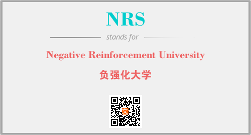 英文缩略词“NRS”经常作为“Negative Reinforcement University”的英文缩写来使用,中文表示:“负强化大学”。本文将详细介绍英文缩写词NRS所代表英文单词,其对应的中文拼音、详细解释以及在英语中的流行度。此外,还有关于缩略词NRS的分类、应用领域及相关应用示例等。