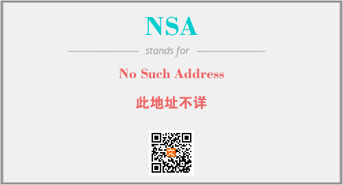 英文缩略词“NSA”经常作为“No Such Address”的英文缩写来使用,中文表示:“此地址不详”。本文将详细介绍英文缩写词NSA所代表英文单词,其对应的中文拼音、详细解释以及在英语中的流行度。此外,还有关于缩略词NSA的分类、应用领域及相关应用示例等。