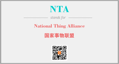 以上为National Thing Alliance英文缩略词NTA的中文解释,以及该英文缩写在英语的流行度、分类和应用领域方面的信息。