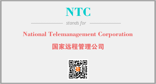上述内容是“National Telemanagement Corporation”作为“NTC”的缩写,解释为“国家远程管理公司”时的信息,以及英文缩略词NTC所代表的英文单词,其对应的中文拼音、详细解释以及在英文中的流行度和相关分类、应用领域及应用示例等。