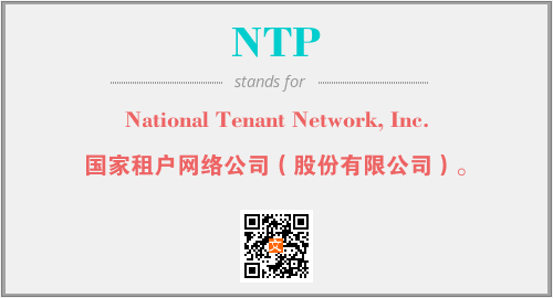 上述内容是“National Tenant Network, Inc.”作为“NTP”的缩写,解释为“国家租户网络公司(股份有限公司)。”时的信息,以及英文缩略词NTP所代表的英文单词,其对应的中文拼音、详细解释以及在英文中的流行度和相关分类、应用领域及应用示例等。