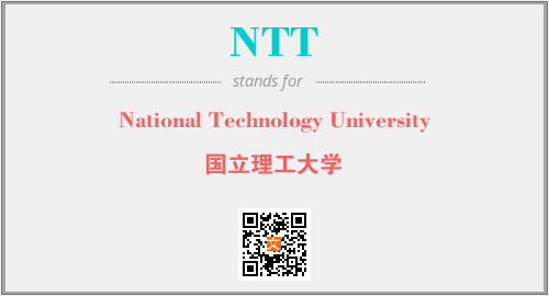 英文缩略词“NTT”经常作为“National Technology University”的英文缩写来使用,中文表示:“国立理工大学”。本文将详细介绍英文缩写词NTT所代表英文单词,其对应的中文拼音、详细解释以及在英语中的流行度。此外,还有关于缩略词NTT的分类、应用领域及相关应用示例等。